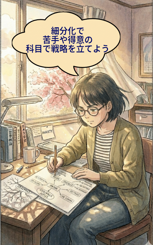 合格点の取得を目指せる科目別の細分化技法
