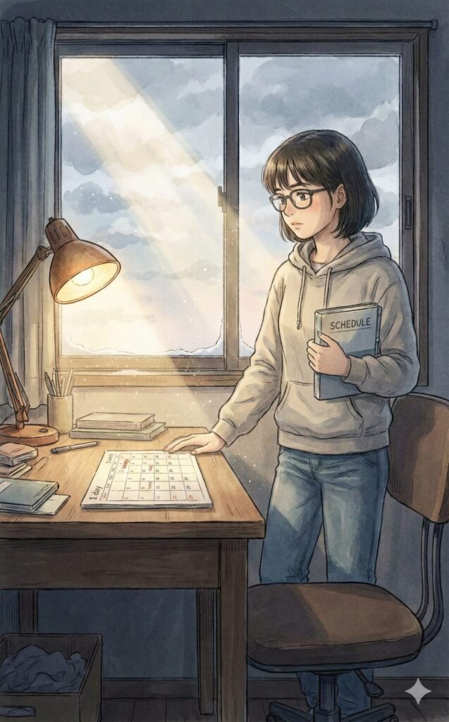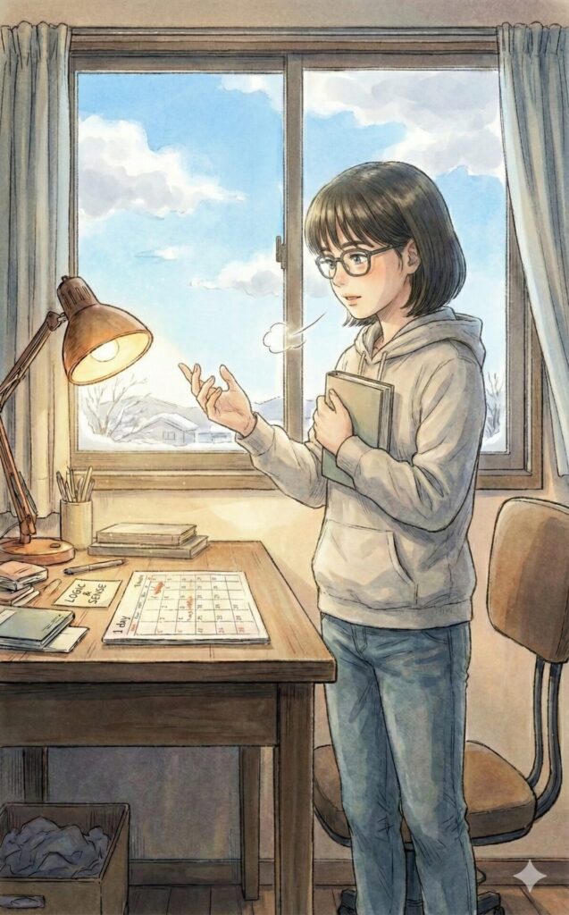 三十路直前の中堅として会計事務所で激務に追われる毎日。予備校の活用は無理とみて公認会計を目指し独学中。山のような受験参考書を繰りかえし読破した。各項目の要点を確実に覚えた筈の彼女は過去問を解き始めた。しかしその結果は誤答が続くばかり。「アタシって今まで何を勉強していたの?!」と自分が腹立たしい。