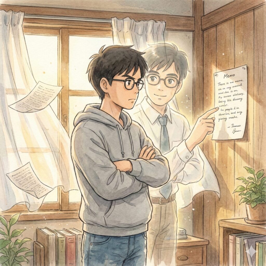 勿論、書き付けて直ぐ客観視の効力が自身に及ぶに越したことはないが「そんなんで悩みや不安が解消するなら苦労はしないわ」とも言える。だからと言ってドコデモメモが無効とするのは早計だ。このメモはこの名が示す様にドコデモでメタ認知を促す記述をしてこの側を歩く書き手に自身を止まって観させる。さてどうなるのか。
