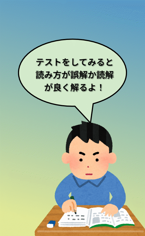 以上に「自分の言葉でイチイチ説明するのってニュース解説者じゃないから無理」「それってコメンテーターじゃないからできない」との異論もあるだろう。ならばもっと簡単でより具体的なイチイチ言語化せずとも、参考書や解答解説の読解を即座に検証できる方法を提示する。それがテスト、例題や過去問で正答を目指すことだ。